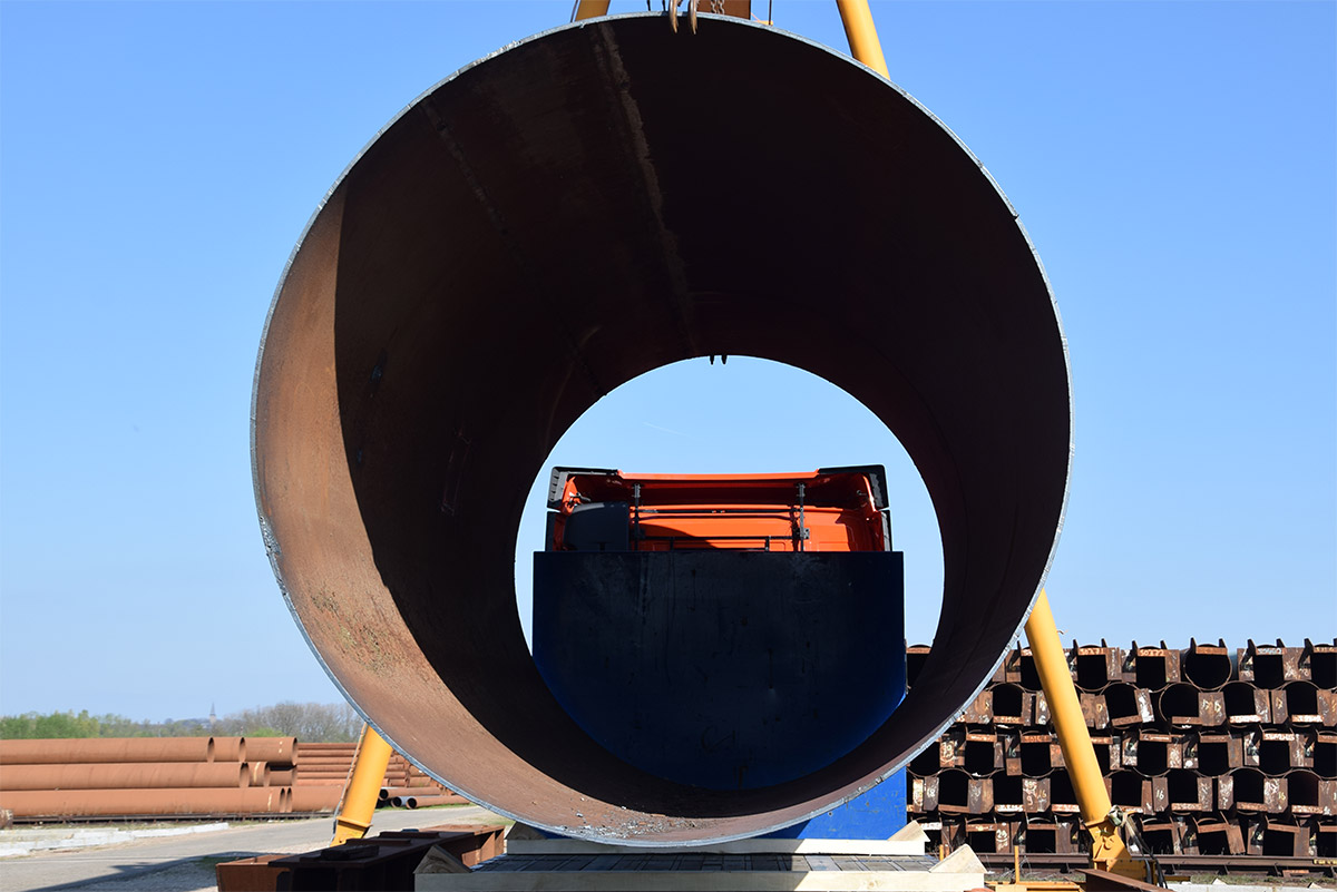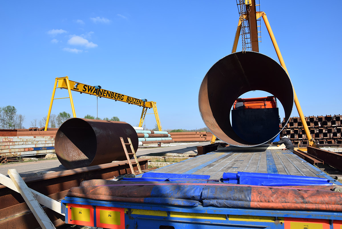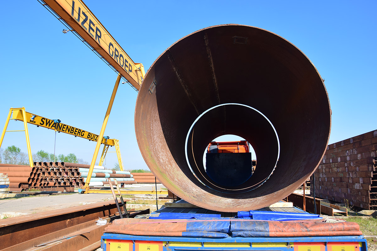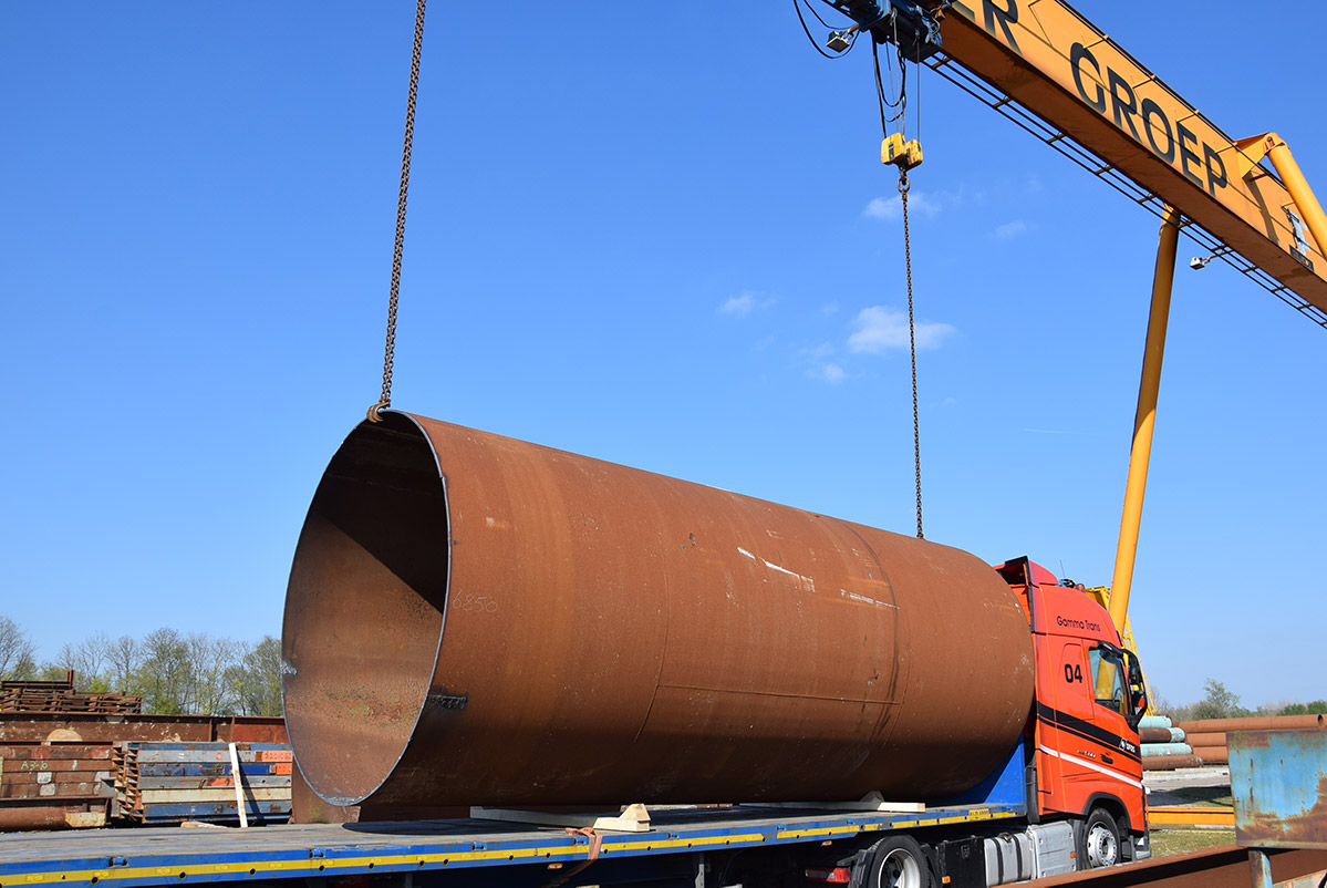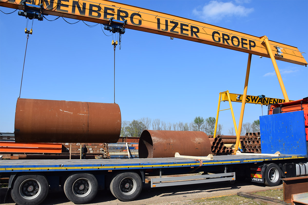 Deze buizen zijn meer dan twee meter doorsnee. Van oorsprong dienden ze als onderdelen van autoclaven in Duitsland. Swanenberg IJzer Groep nam ze over en maakte ze volledig schoon en klaar voor transport voor een klant in Oostenrijk. Waar ze momenteel dienen als tijdelijke constructie in een infraproject.