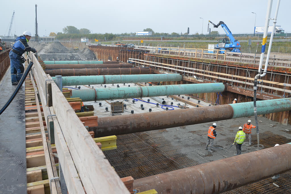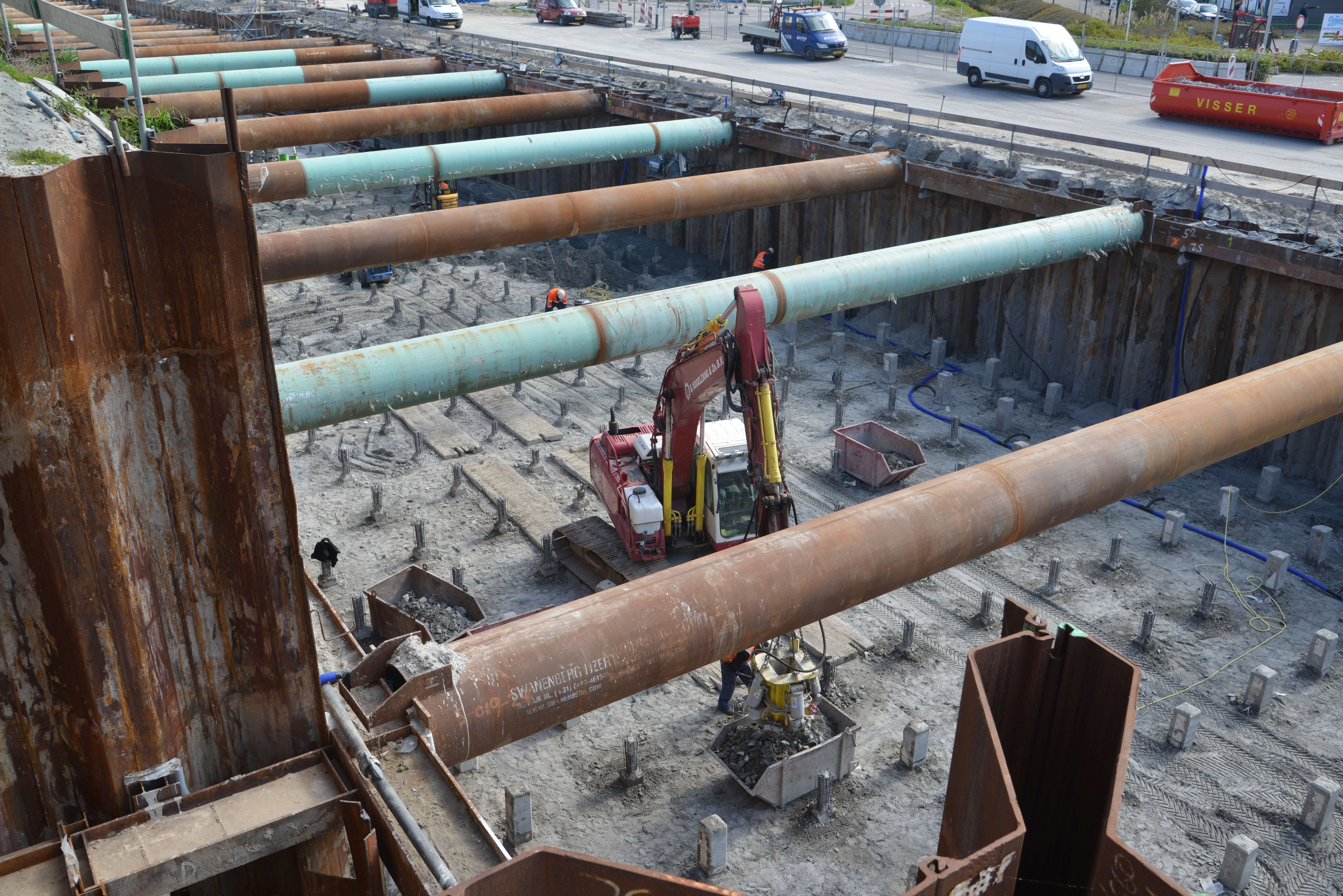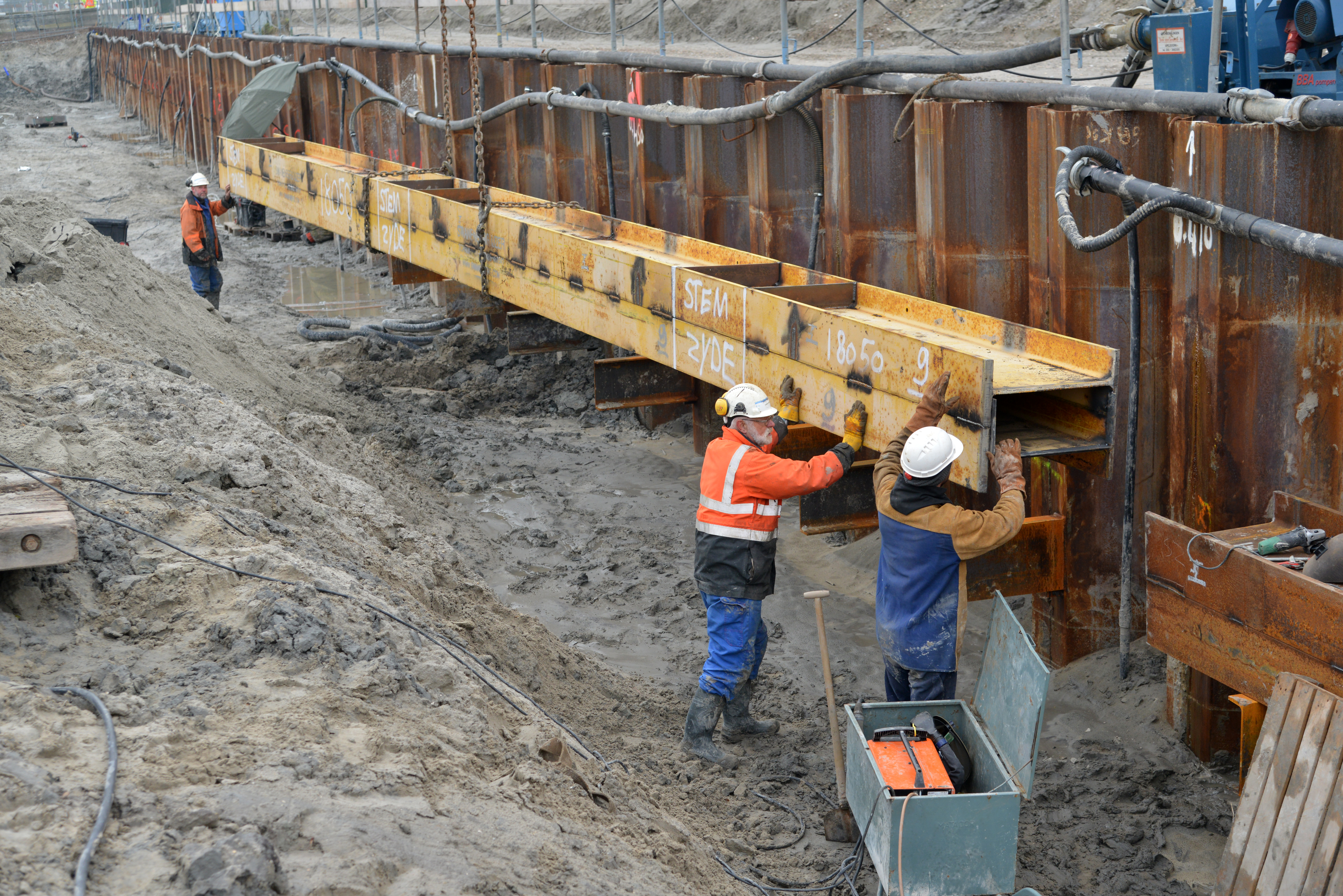 Een stempelraam biedt ondersteuning aan de (dam)wanden van de verdiepte bak tegen de gronddruk die van buiten de bouwkuip komt. In de verdiepte bak komt uiteindelijk een deel van de nieuwe weg te liggen. Naarmate de bouw vordert en het betonwerk de basis van de constructie overneemt, kunnen de stempels weer worden uitgehaald, worden verplaatst of eventueel weer terug in ontvangst worden genomen door Swanenberg.
